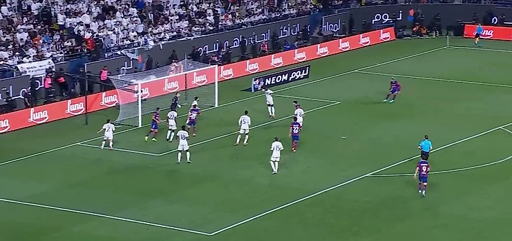 Это привело к голу Левандовского. 8 игроков Мадрида вжались в свою штрафную. Барселона катала мяч слева в центре и обратно. Навес, вынос Менди и одинокий и забытый Левандовски на линии штрафной шикарно поймал мяч на ногу. Не совсем понятно кто должен был контролировать эту зону подбора. Феде, или Родриго должен был туда прийти. Или Джуд там остаться. Не понятно. В любом случае, поляк наказал Мадрид за такую пассивную игру.