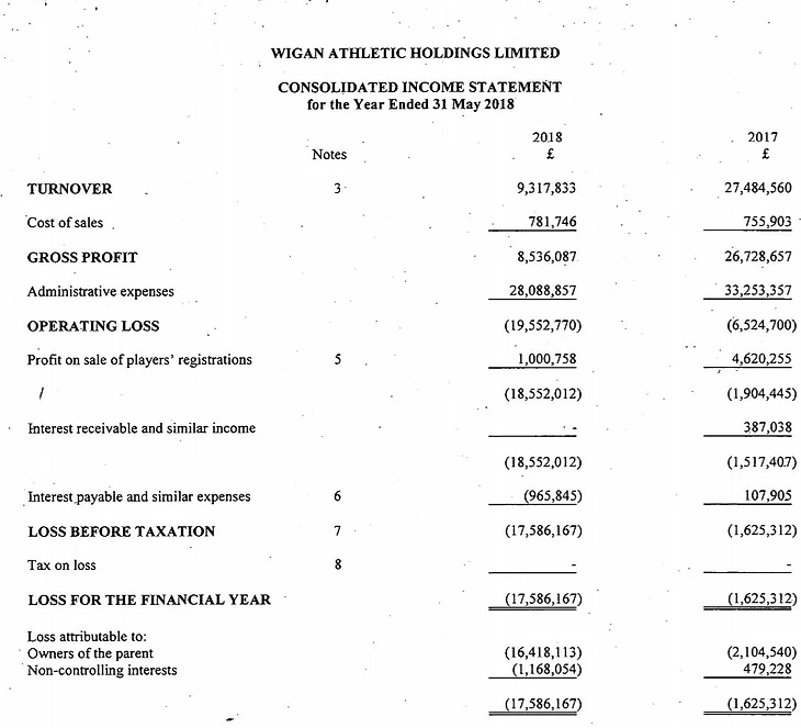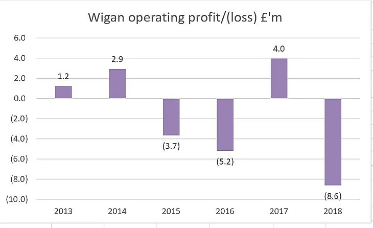 «Уиган» терпел убыток в 150 000 фунтов в неделю в сезоне 2017/18.