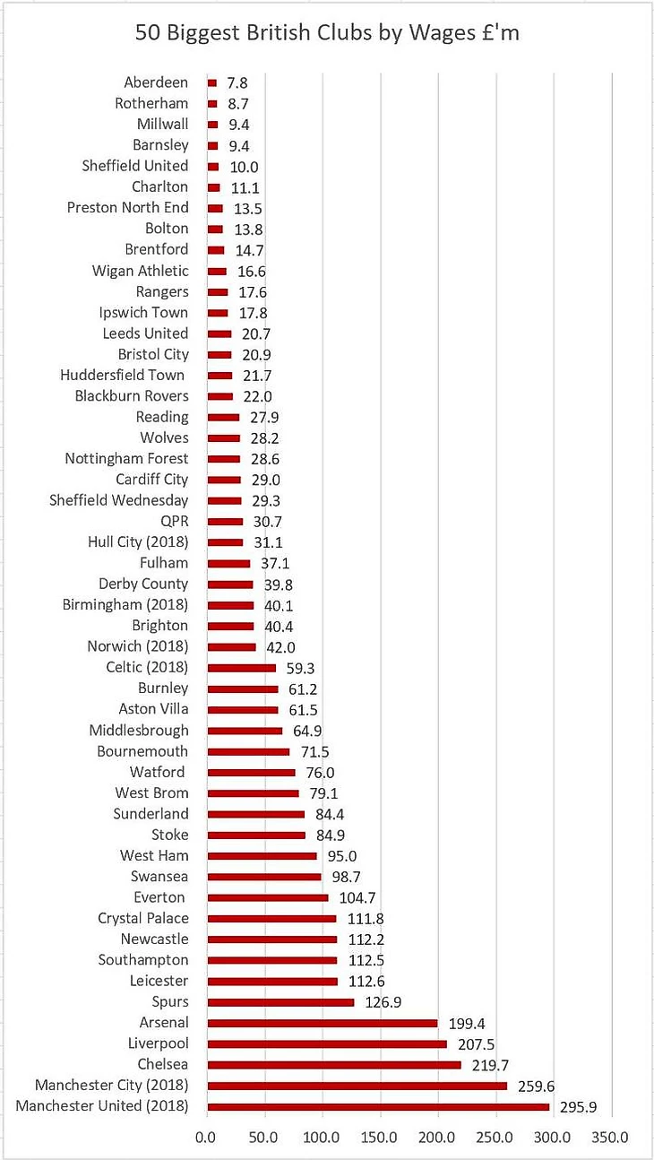 50 крупнейших британских клубов по размеру зарплатного фонда на 2018 год. «Уиган» в солидной кампании и платит своим игрокам даже больше, чем «Брентфорд» и «Шеффилд Юнайтед».