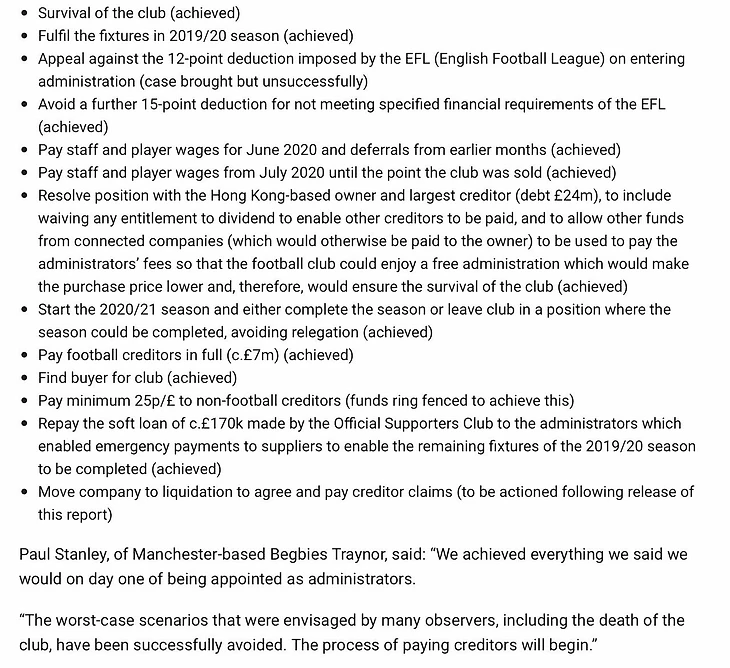 С момента поглощения ничего существенного в финансовом мире футбола не случалось. Это было загадкой. Новый владелец нашел в бухгалтерских книгах неприятный сюрприз? Была ли у них внезапная финансовая чрезвычайная ситуация в другом месте? Всегда ли они намеревались это сделать? Вопросы без ответа. А EFL понадобится больше мыла и воды, чтобы отмыть руки от этого. Это административная катастрофа, которая осталась на их совести.