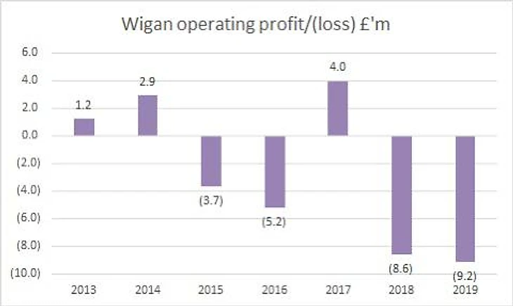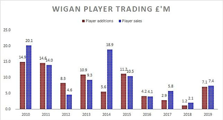В сезоне 2018/19 «Уиган» понес операционный убыток в размере 16 миллионов, играя в Чемпионшипе. Продажи игроков сократили эту сумму убытка до 9 миллионов.