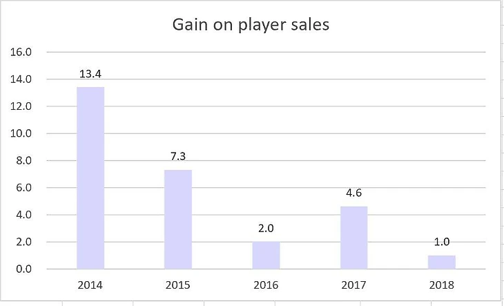 «Уиган» понес убытки в размере 30 миллионов фунтов с момента вылета из АПЛ, несмотря на парашютные выплаты, и поэтому заработал на продажах игроков 28 миллионов фунтов, чтобы компенсировать эти потери.