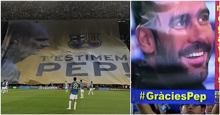 Любовь болельщиков к Пепу всегда была огромной. Неудивительно, что фанаты подготовили для тренера особое прощание. Гигантское тифо с надписью «T'estimem Pep!» (на каталонском языке: «Мы любим тебя, Пеп!») появилось на трибуне «Камп Ноу». Конечно, были и плакаты поменьше, и баннеры с тем же посланием, но это вошло в историю.