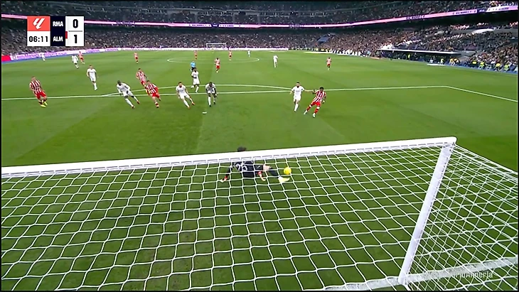 Через несколько минут «Альмерия» умудрилась забить третий: вингер Рамазани выкатил на Серхио Аррибаса, воспитанник «Реала» хладнокровно переиграл Кепу. И не стал праздновать.