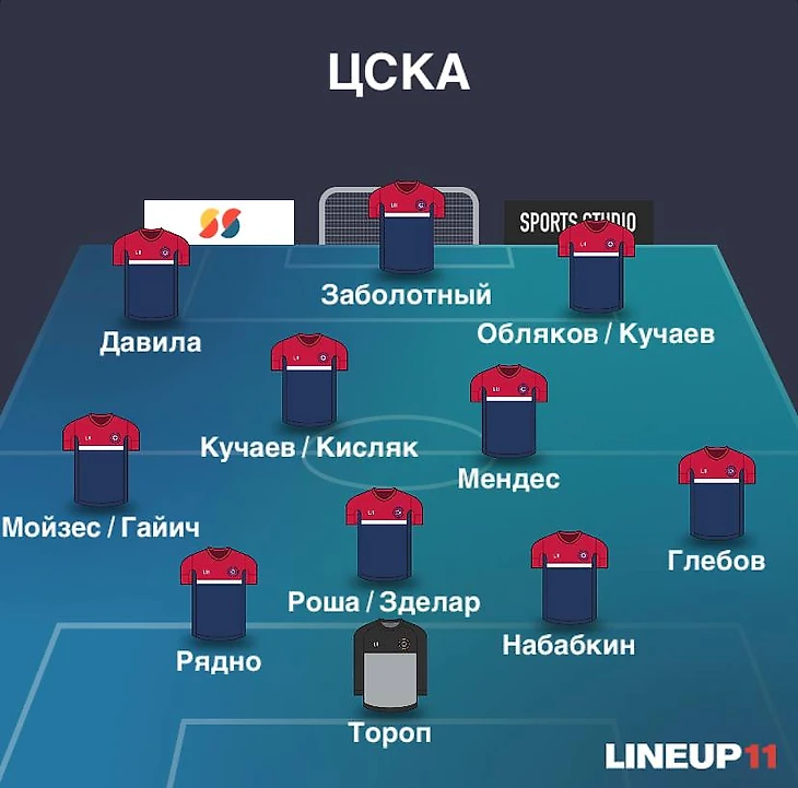 При этом Саша вместе с Кисляком начинал игру в центре поля. Позже туда вышли Мендес и Кучаев, а вскоре Матвей снова вернулся в середину, переведя Костю в атаку. Вместо Заболотного, на острие атаки начал новичок Мусаев, а ему помогали Обляков и Чалов. Уже в перерыве появились Давила и Антон Заболотный.
