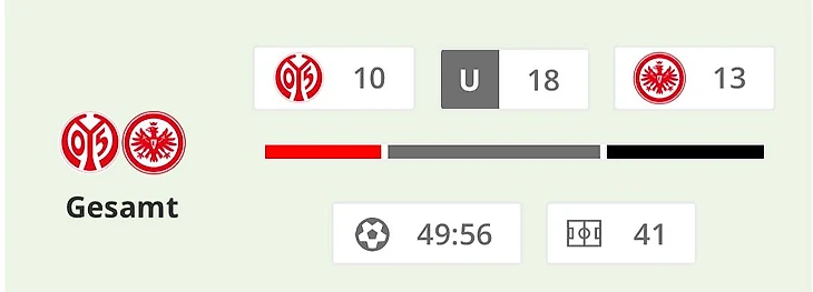 «Айнтрахт» не проигрывал «Майнцу» в семи матчах подряд Бундеслиги (три победы, четыре ничьи), и в этой паре никогда не было более продолжительной серии. Франкфуртцы также не проигрывают уже в трех матчах Чемпионата подряд и набирают семь очков. В то же время «Майнц» остается семь матчей без побед, при этом имея пять ничьих.