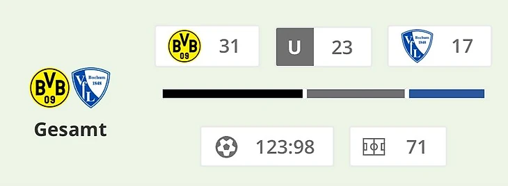 «Боруссия Д» проиграла в воскресенье только один раз из своих последних 13 матчей чемпионата (восемь побед, четыре ничьи). Кстати, Марко Ройс не забил ни одного из своих 154 голов в Бундеслиге «Бохуму», причем лишь один раз из шести матч окончился победой «шмелей».