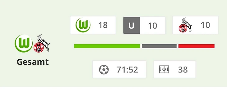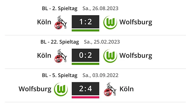 В последних пяти дуэлях всегда побеждала команда гостей - в первом круге «Вольфсбург» победил со счетом 2:1. «Кельн» мог бы установить исторический рекорд Бундеслиги, одержав победу: шесть выездных побед подряд ранее были оформлены лишь в одной паре «Штутгарт» - «Кельн» (2008 – 2011).