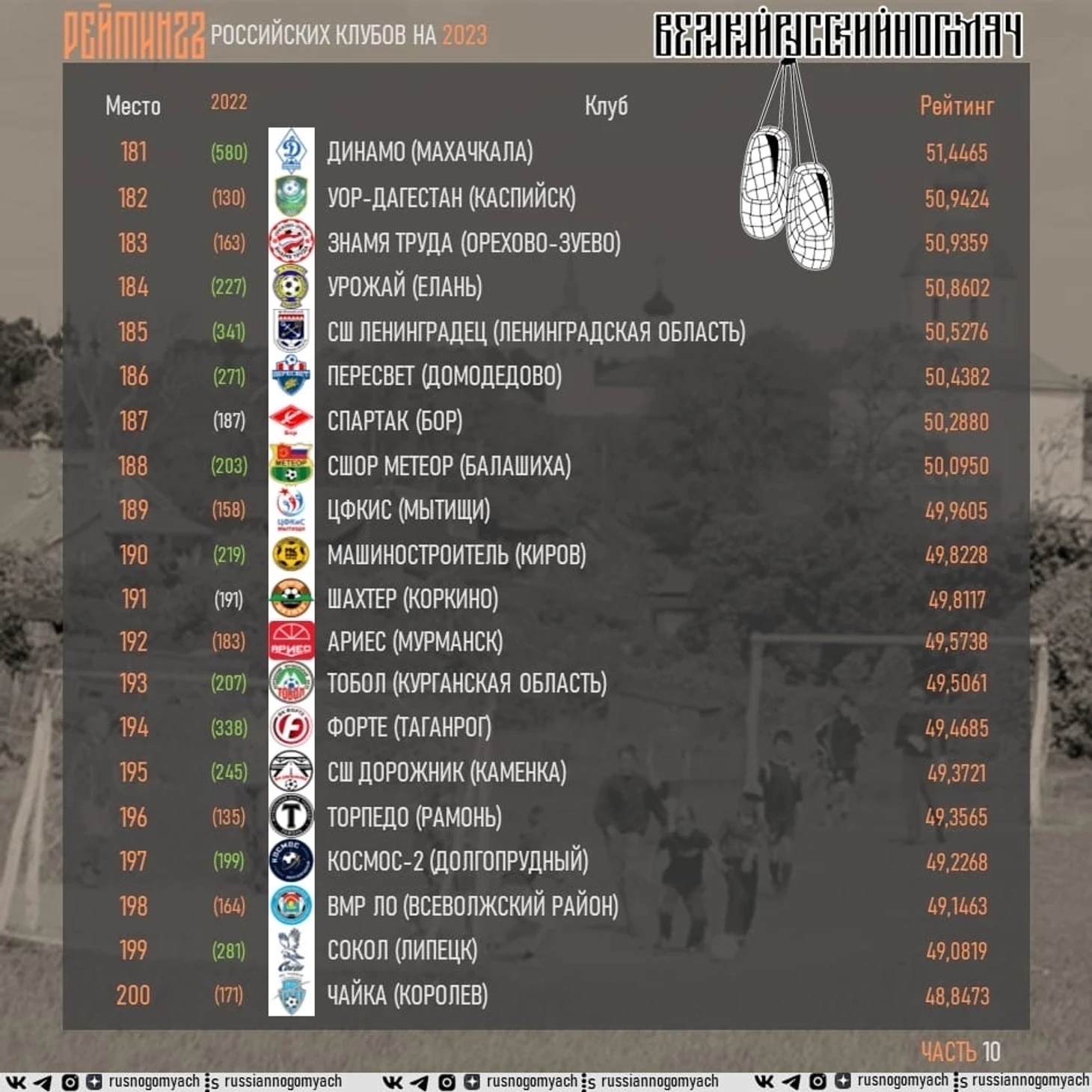 Из ярких взлетов стоит отметить Динамо Махакала, что сейчас лидирует в первой лиге, Урожай из Елани, школа Ленинградца, домодедовский Пересвет, Форте из Таганрога, школу Дорожника и липецкий Сокол.