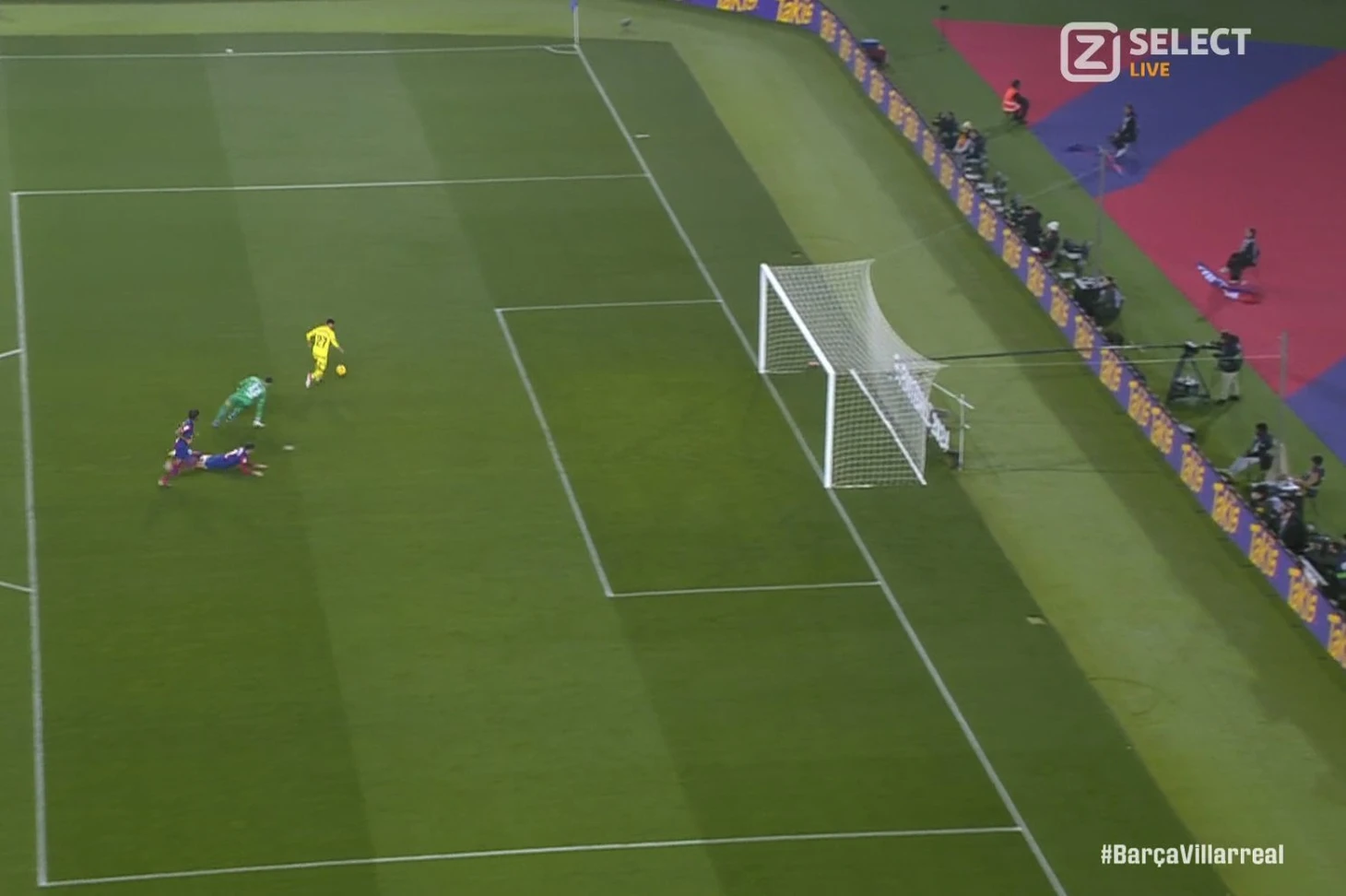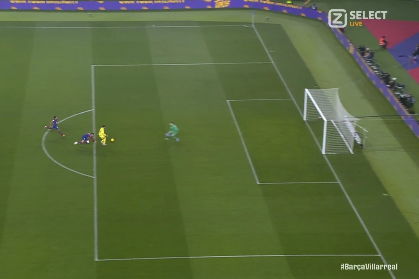 Жоау Канселу не смог обработать мяч, снаряд перехватил Ильяс Ахомаш. Полузащитник «Вильярреала» обогнал Пенью и забил в пустые.