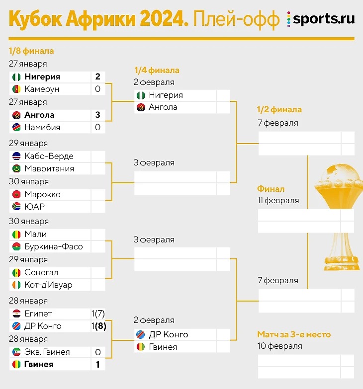 Кстати, это первая победа Гвинеи в плей-офф Кубка Африки! Все остальные были только на групповом этапе.