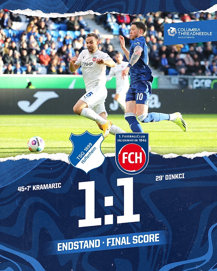 «Хайденхайм» не сумел удержать преимущество над «Хоффенхаймом». Отдельно отметим гол самого быстрого игрока Бундеслиги этого сезона Эрена Динкчи. Его проход на 29-й минуте с последующей стеночкой и прорывом линии обороны – настоящая роскошь.