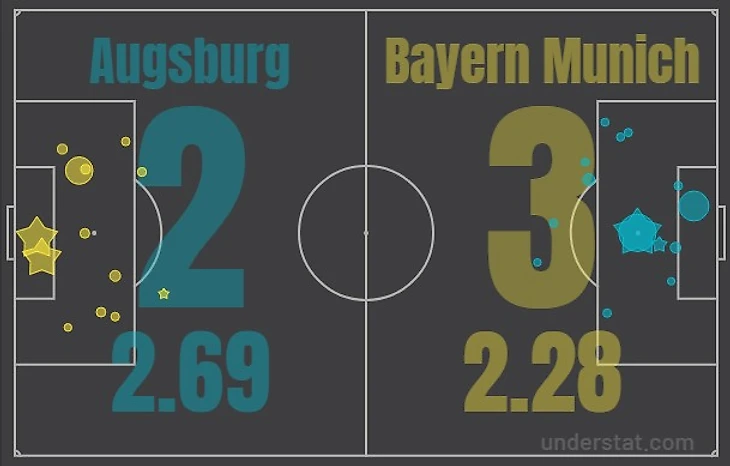 Эрмедин Демирович заставил «Баварию» снова понервничать в начале второго тайма, оформив свой 9-й гол в сезоне точным ударом головой. Но вскоре гости вернули комфортный перевес. Кейн прервал свою 2-матчевую безголевую серию благодаря подарку Якича – зимний новичок «Аугсбурга» выбил мяч из-под ног Мусиалы прямо на Кейна, одиноко стоявшего вблизи ворот.