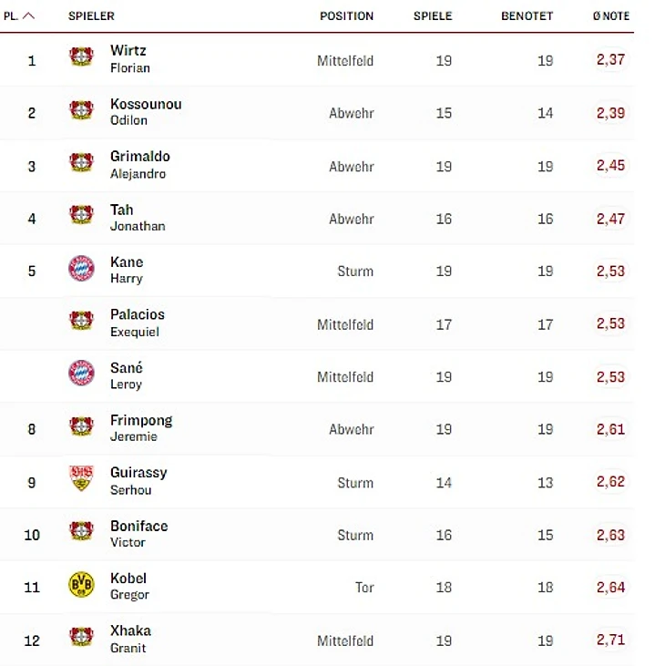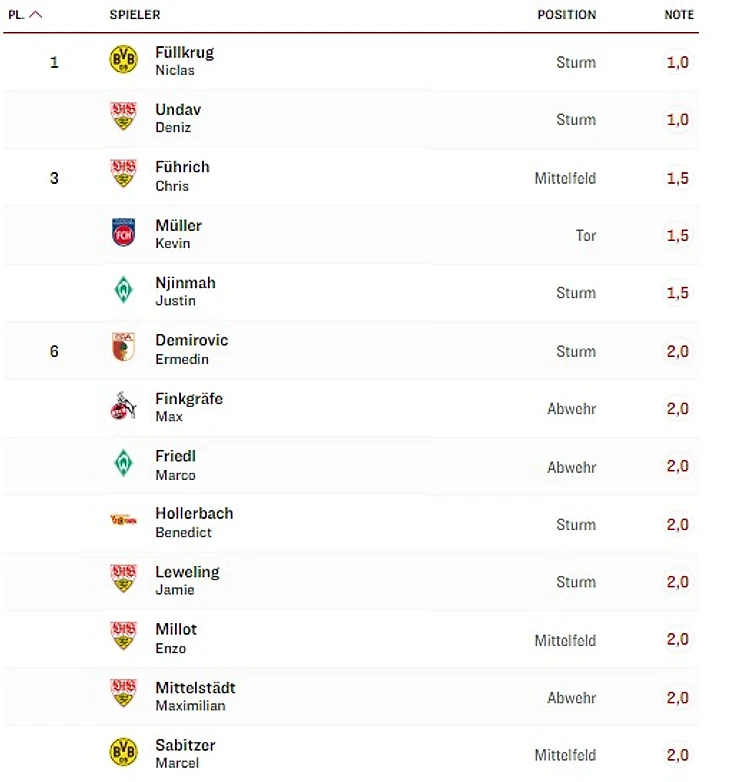 - по версии Bundesliga.com: