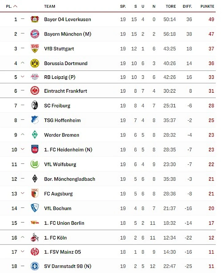 Лишь в четвертый раз в истории Бундеслиги «Байер» остается непобежденным на протяжении 19 туров. Последний раз такая серия удавалась в сезоне 2009/10;.