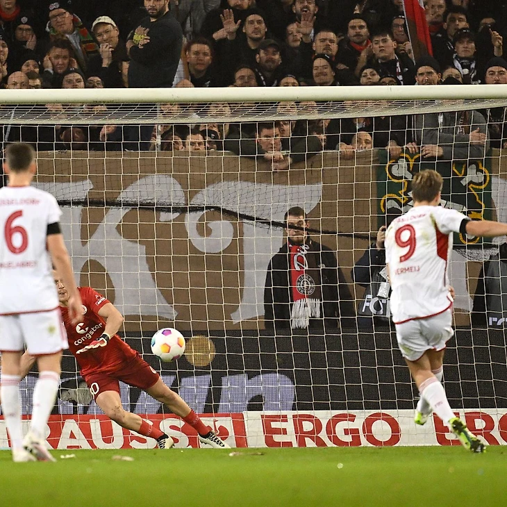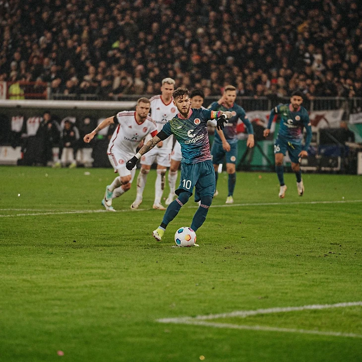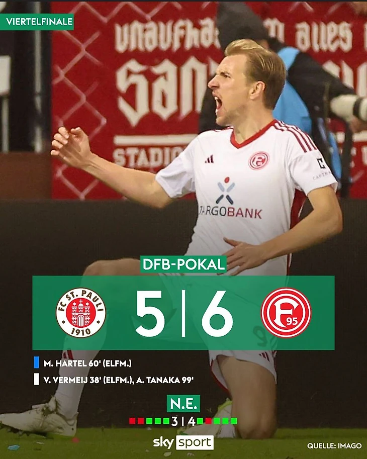 Окрылённый поздним голом «Санкт-Паули» даже лидировал в серии пенальти со счётом 3:1, но самыми стальными оказались нервы футболистов «Фортуны». Вратарь Кастенмайер, наконец, отбил третий для себя за неделю пенальти в исполнении Марцеля Хартеля, а вместе с ним — удар бразильца Мауридеса. В составе гостей решающий одиннадцатиметровый паненкой забил 22-летний грек Цолис. На такую смелость он пошел в свой день рождения. Риск оправдался, «Фортуна» — в полуфинале Кубка Германии.