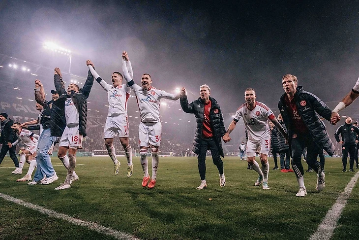 «Фортуна» экстра-таймы начала активно, и этот напор воплотился в гол. Дальний выстрел Дафернера, удар в подкате от Танаки на добивании — будем считать, что японец исправился за привоз (1:2). Но настоящая кубковая битва продолжилась по-настоящему драматично — «Санкт-Паули» сравнял счёт на 120-й минуте, продлив этот праздник футбола (на серию пенальти). Кстати, главный тренер «пиратов» Фабиан Хюрцелер встречал гол Бухалфы на одной трибуне с фанатами (ранее тренер увидел перед собой красную карточку от главного судьи).
