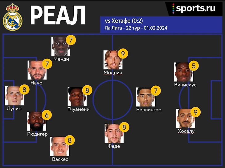 Хоселу – 9. Оформил дубль, хладнокровно реализовав два момента. Должен был уходить еще и с голевой передачей, если бы Вини не заигрался. Отличный матч Хоселу, один из лучших с момента возвращения в «Мадрид». Сделал результат на табло и принес важные три очка.