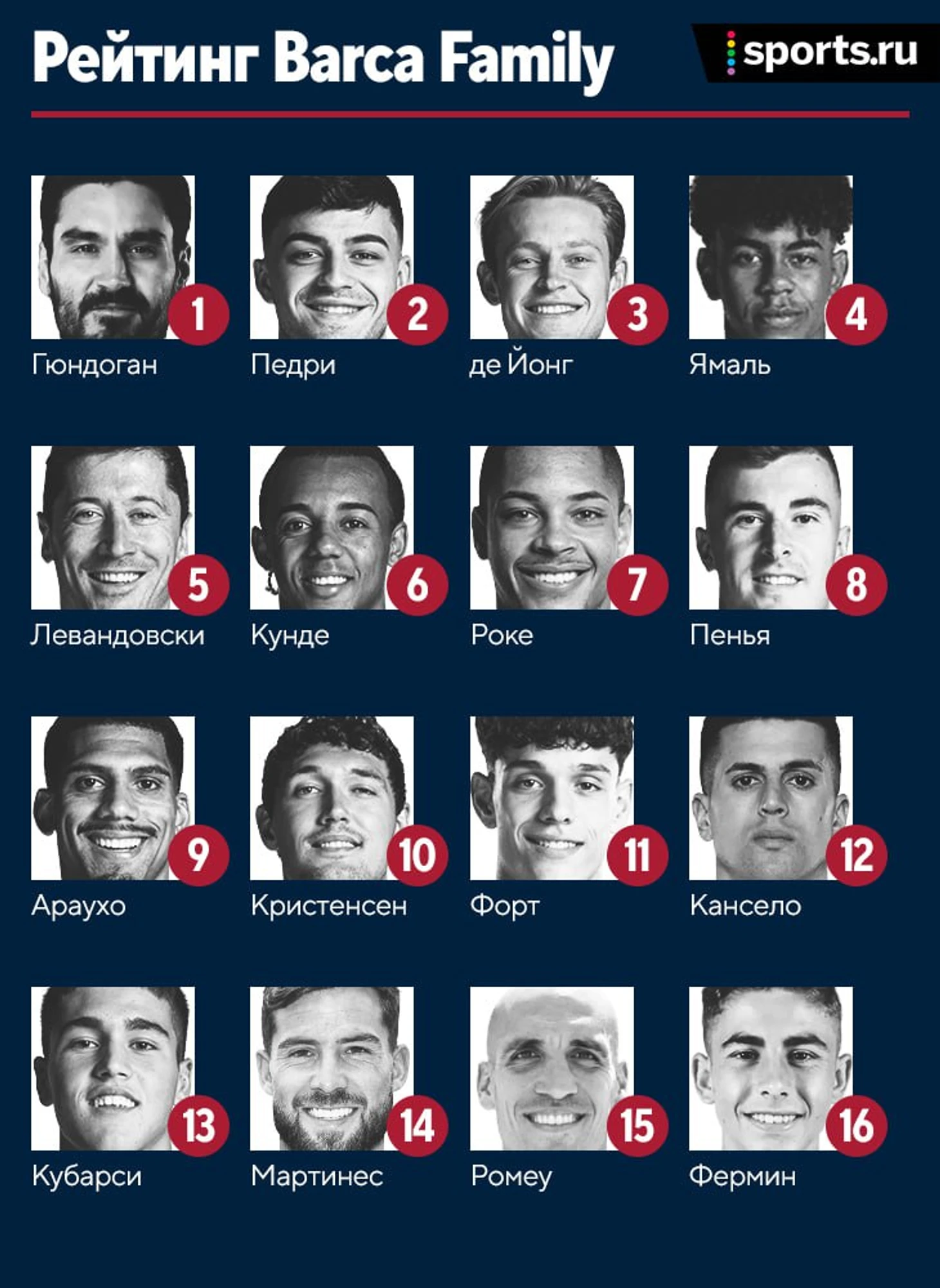 7. Витор Роке – гол бразильца придал «Барсе» уверенности, а удаление скорее выглядит нелепостью, чем каким-то промахом самого игрока. 6. Жюль Кунде – 6 успешных действий в обороне и 92% точности передач. Француз очень качественно справляется со своей работой на фланге. 5. Роберт Левандовски – хороший первый гол команды, но стоит отметить и игру без мяча. Представьте, Роберт совершил 5 успешных действий в обороне: 2 выноса, 2 перехвата и 1 блокировка. 4. Ламин Ямаль – сегодня был не так успешен в дриблинге, хотя с экрана казалось, что равных Ямалю просто нет. Молодой талант не уступил Роберту и так же выдал 5 успешных действий без мяча, за что получил порцию похвалы от Хави после матча.