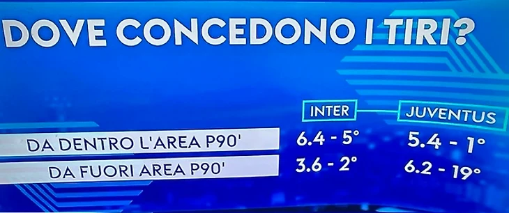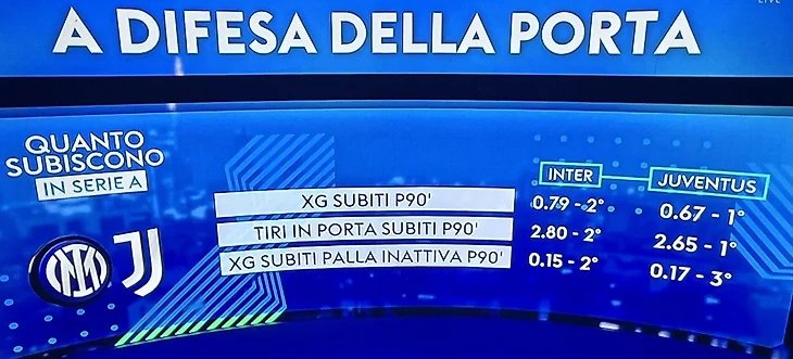 «В Топ-5 европейских чемпионатов есть только одна команда, расположившаяся между Апеннинскими лидерами по пропущенным мячам – «Ницца» (11 голов), возглавляемая молодым итальянским тренером Франческо Фариоли. Все остальные пропустили больше. «Интер» позволил соперникам забить 10 мячей, «Ювентус» - 13. Разбирать Дерби д’Италия можно, начав с цифр, характеризующих оборонительную фазу, с физической мощи защитников. Ворота «Интера» остались в неприкосновенности в 13 матчах из 21, «Ювентуса» - в 12 из 22. Защитники «Ювентуса» забили 8 мячей из 36 командных, именно они удержали бьянконери наверху таблицы, когда Влахович и компания испытывали затруднения. У «Интера» 7 мячей от игроков обороны, хотя в командной копилке (50 голов) доля не так велика.