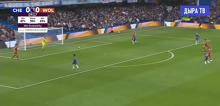 Ну и очередной ошибки Кайседо, именно он не накрыл бьющего. То, что должен был использовать «Челси», замечательно использовал «Вулверхэмптон».