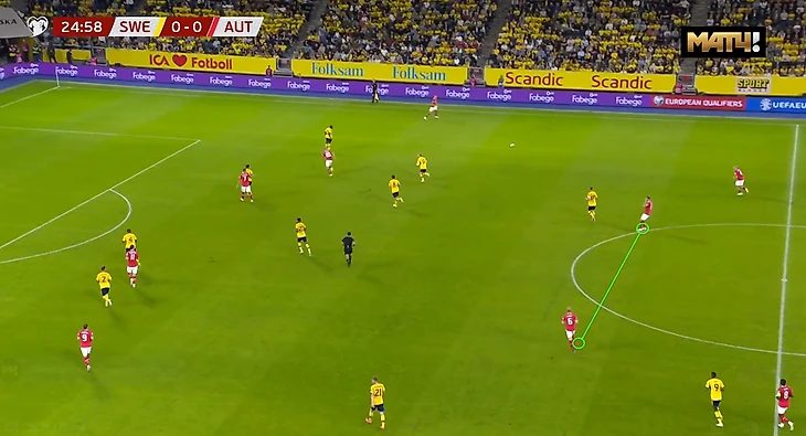 Австрия выискивает свободные зоны на краях обороны соперника, создавая численное преимущество и используя хитрость Забитцера.
