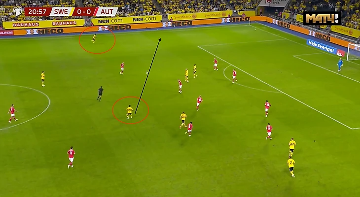 Кстати, обратите внимание, насколько высоко забирается в этих ситуациях Забитцер. В матче со шведами Рангник расположил его на левом фланге, что позволило ему чаще оказываться у ворот соперника.