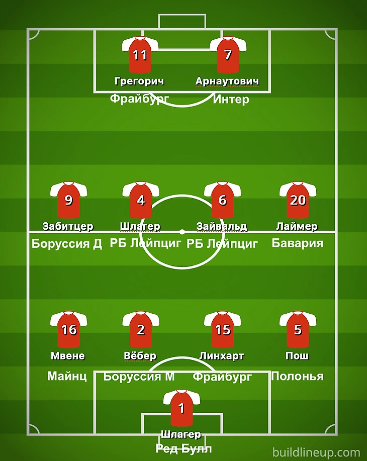 4-4-2. Состав не более, чем предположительный, поскольку неизвестно, успеют ли восстановиться Лаймер и Линхарт. Представим, что да.