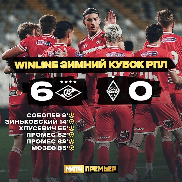 «Спартак» берет зимний кубок РПЛ, побеждая «Кайрат» - 6:0, Промес делает дубль!