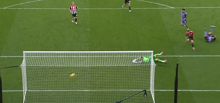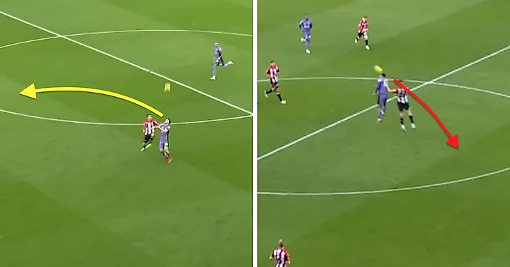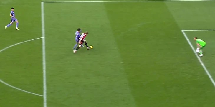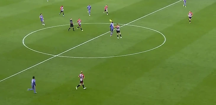 Речь о первом голе «Ливерпуля» от Нуньеса и третьем от Салаха. На скриншотах можно заметить сходство в билд-апе и передаче мяча головой.