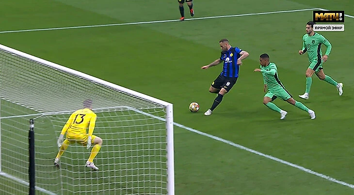 И все-таки у Арнаутовича получилось выйти с поля не неудачником. На 79-й минуте Мартинес выбежал в быструю атаку и пробил с линии штрафной, но Облак отбил в сторону – а там подсуетился Марко.