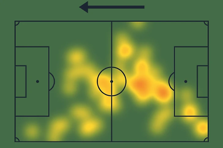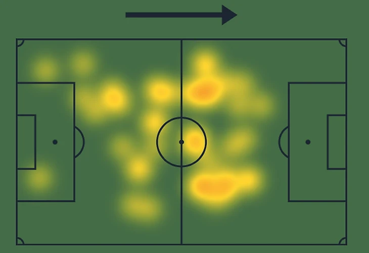 Но лучше всего неоднородность игры Лоботки показывает его тепловая карта. Смотрите сами, это два отборочных матча со сборной Португалии (словаки оба проиграли).