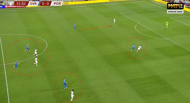 Практически каждый раз я упоминаю прессинг, несмотря на то, что им пользуются большинство команд. Но все же, для сборных уровня Словакии, это иногда единственный вариант и шанс на успех.