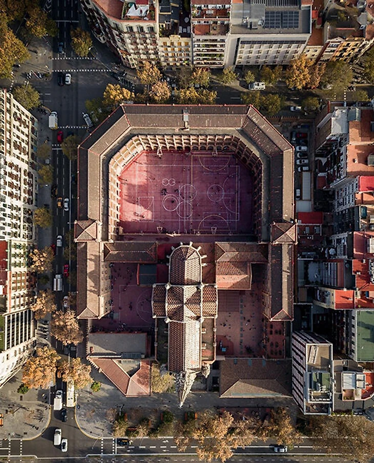 – Следующее фото из Испании. Что это за здание вокруг площадки?
