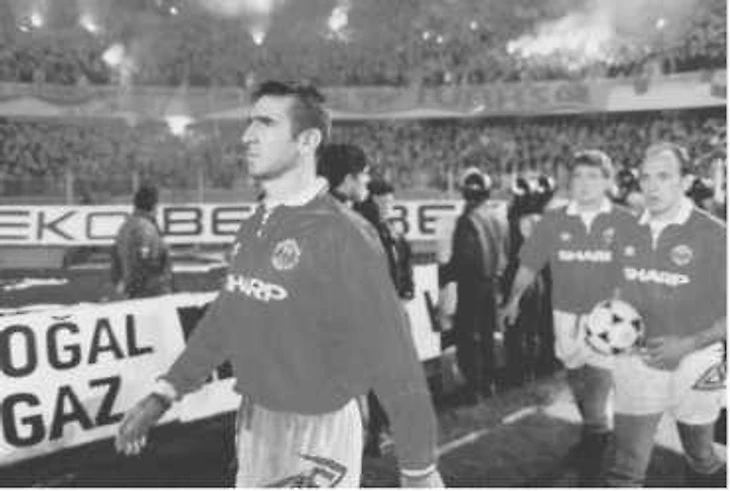 К сожалению, «Галатасарай» отказался следовать сценарию, написанному английскими командами, когда 3 ноября игрался ответный матч. Атмосфера, в которой проходила игра, была шокирующей даже для игроков, привыкших к «мюнхенским самолетам», которые тошнотворно разбивались на трибунах «Энфилда» и «Элланд Роуд». По прибытии в аэропорт Стамбула команду «Юнайтед» встретили плакатами с надписями «Добро пожаловать в ад» и «Вы умрете». Посыльный, работавший в роскошном отеле, где остановился «Юнайтед», хмуро посмотрел на Гари Паллистера и провел пальцем по горлу. В автобус команды, когда он пересекал Босфор, летели кирпичи. Сама игра была даже хуже. Кантона упустил лучший шанс «Юнайтед» на 55-й минуте, когда Паркер забросил мяч в штрафную. Дважды он подхватывал мяч, дважды ему не удавалось должным образом пробить по нему. Гнев и тревога взяли над ним верх. Затем, на 77-й минуте, разгневанный тем, что Бюлент симулировал травму, он убежал с поля через периметр и выбил мяч из перчаток Незихи, в завязавшейся потасовке ударил локтем вратаря по ребрам, и его пришлось спасать от толпы турецких игроков, и арбитр, проявив удивительную снисходительность, решил не делать ему предупреждения. И это еще не все. После того, как игра закончилась со счетом 0:0, отправив турок дальше по правилу выездного гола, когда на игроков «Юнайтед» посыпались всевозможные снаряды, Кантона подошел к арбитру, пожал ему руку и сказал несколько отборных слов на французском языке, который г-н Ротлисбергер учил, чтобы зарабатывать на жизнь, когда УЕФА не нуждался в его услугах [В 1997 году УЕФА полностью избавился от Ротлисбергера, приговорив его к пожизненной дисквалификации, когда было установлено, что в 1996 году он обратился к цюрихскому «Грассхопперу» с предложением «продать» им арбитра предстоящего европейского матча против «Осера». Судья, о котором идет речь, Вадим Жук, оказался его другом, и цена составит 100 000 швейцарских франков. Дисквалификация была оставлена в силе после апелляции. Выступление Ротлисбергера в ночь удаления Кантона стало предметом ряда слухов сразу после игры]. В руках рефери появилась карточка, и она была красной.