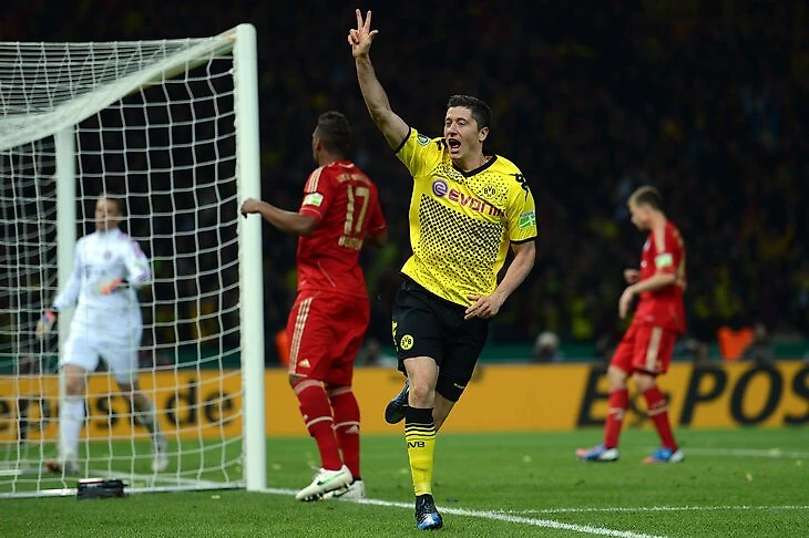 В чемпионате «Бавария» проиграла все матчи обеим «Боруссиям». Казалось, что криптонит удастся побороть в Кубке Германии: в изнурительном полуфинале все же переиграли «Менхенгладбах» в серии пенальти. В решающем матче ждал главный босс – «Дортмунд». В ярком финале «Боруссия» разбила «Баварию» 5:2, стильно подчеркнув, кто был лучшей командой сезона в Германии. Левандовски забил три, Марио Гомес – ноль.
