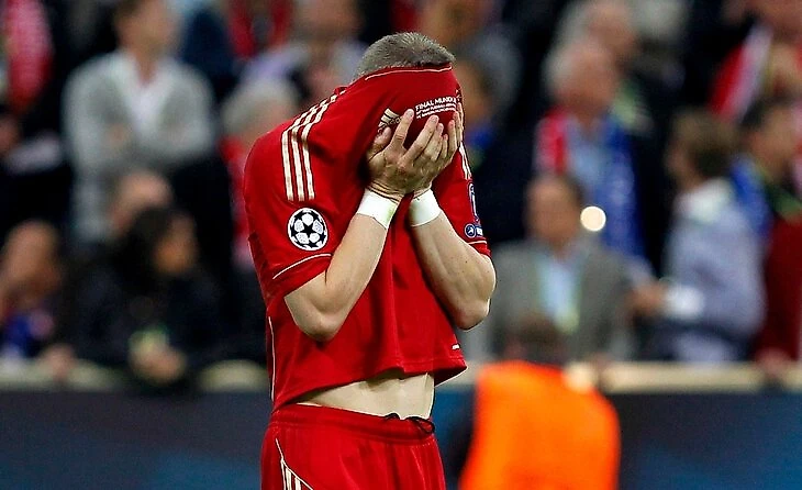 Хозяева играли заметно лучше, но запарывали свои шансы и никак не могли забить. Когда на 83-й Томас Мюллер все-таки внес мяч в сетку, казалось, можно наконец выдохнуть: сезон спасен, да еще как! Празднуя триумф в ЛЧ в домашнем финале, легче легкого забыть о любой неудаче. Но когда «Бавария», по выражению Швайнштайгера, уже «девятью пальцами» держала в руках кубок, единственный угловой «Челси» в матче на 88-й минуте превратился в гол Дидье Дрогба.