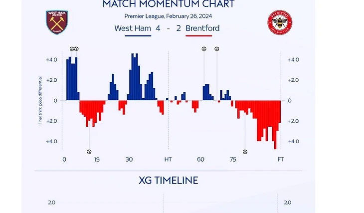 Еще до того, как «Брентфорд» начал свою атаку, счет уже был 2-0 в пользу «Хаммерс». Боуэн передал мяч Мохаммеду Кудусу и, оставшись незамеченным, пробежал в штрафную, где его ждала легкая задача - перевести мяч Куфаля в ворота.«Брентфорд» смог забить свой первый и единственный гол в первом тайме. Кин Льюис-Поттер принял мяч от Ивана Тони и уверенно нанес удар по воротам Маупэ, который не потерял самообладание и отправил мяч высоко в сетку, минуя Альфонса Ареолу.