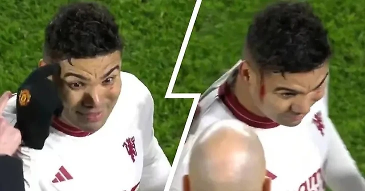 Каземиро получил неприятный удар по лбу, когда забивал мяч головой в матче «Манчестер Юнайтед» с «Ноттингем Форест» в Кубке Англии.
