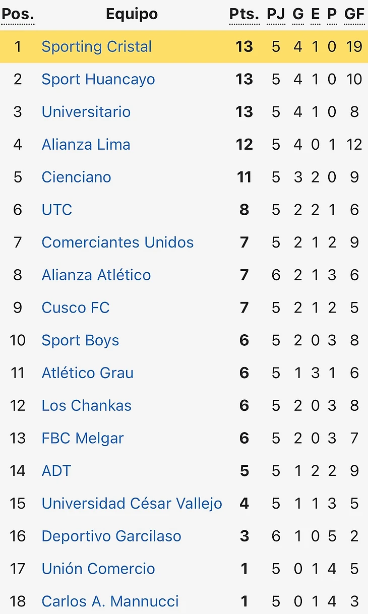 Однозначно худшей командой первого месяца является «Карлос Маннуччи». 1 очко в пяти матчах. 4 пропущенных гола от «Университарио», 4 гола от «Спортинга», 4 гола от «АДТ» и даже 3 от новичка Лиги 1 «Комерсиантес Унидос». Всё настолько грустно, что даже удивительно, что Франко Наварро до сих пор является тренером клуба.