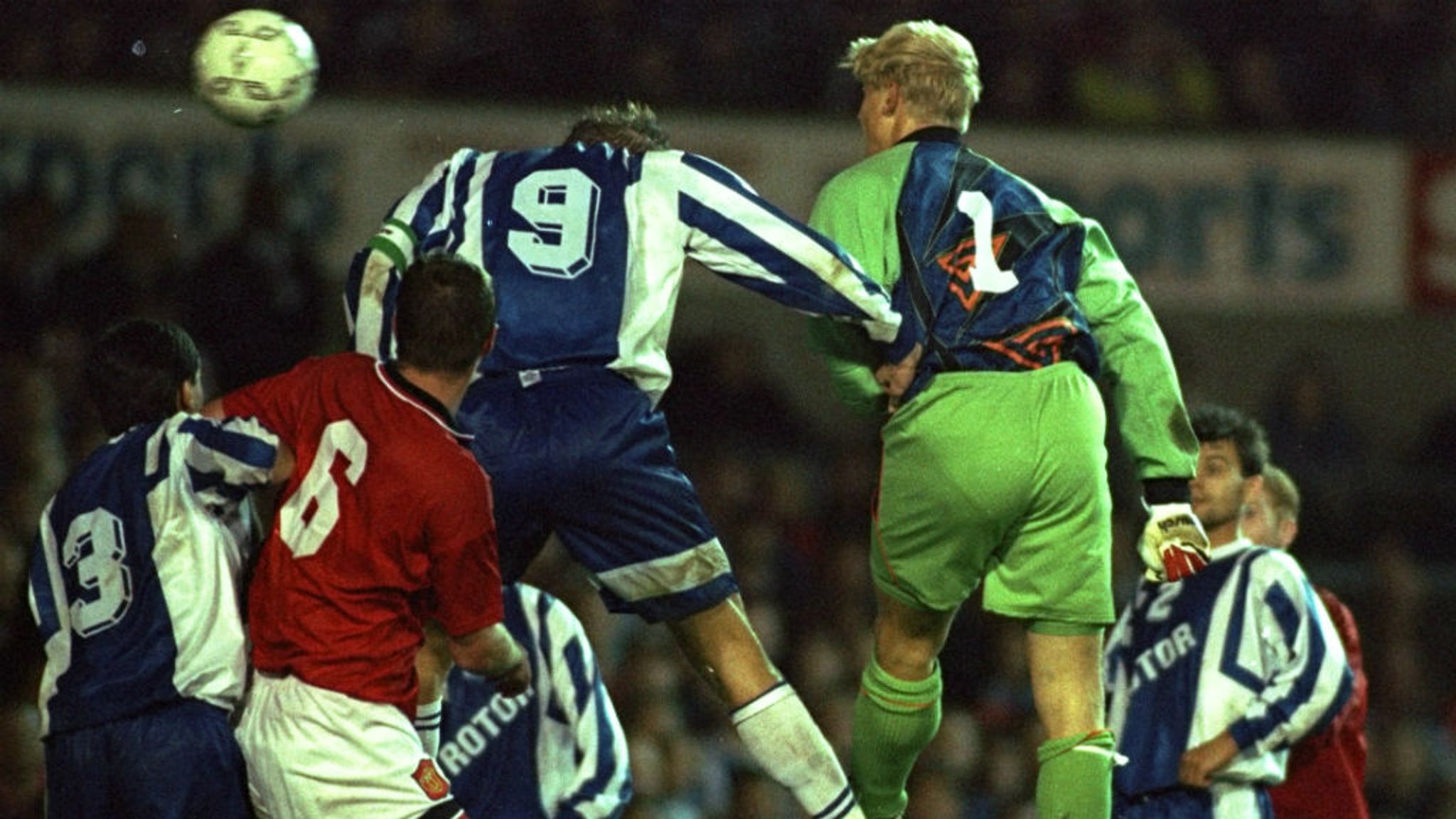 Нельзя сказать, что «Юнайтед» нашел способ жить без Эрика. Когда сентябрь подошел к концу, и «Олд Траффорд» готовился к возвращению изгоя на центральную сцену, неопытная команда Фергюсона менее чем за неделю вылетела из двух соревнований. 20-го числа — в день, когда генеральный адвокат Европейского суда Карл Отто Ленц вынес решение в пользу бельгийского футболиста Жана-Марка Босмана и навсегда изменил лицо футбола — намеренно ослабленный состав «Юнайтед» был разгромлен со счетом 0:3 «Йорк Сити» из второго дивизиона в Кубке Лиги. Дома. По правде говоря, Фергюсона мало заботило это соревнование, гораздо меньше, чем Кубок УЕФА, который его клуб никогда не выигрывал, но который все еще сохранял большую часть своего престижа. Но шесть дней спустя волгоградский «Ротор», сильная команда, если не самый гламурный клуб Европы [Гламурный? Серьезно? прим.пер.], удержал ничью 2:2 в Манчестере, несмотря на то, что вратарь Петер Шмейхель ударом головой забил единственный гол в своей английской карьере. «Юнайтед», который в первом матче показал обнадеживающие 0:0, выбыл из соревнования по правилу выездного гола.