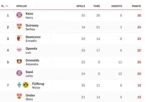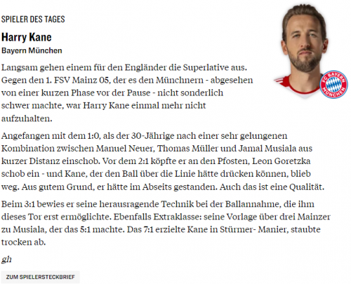 • В четвертый раз в сезоне Бундеслиги Харри Кейн забил три гола в одной игре. Ни один игрок Бундеслиги до него не достиг такого результата в свой первый сезон.