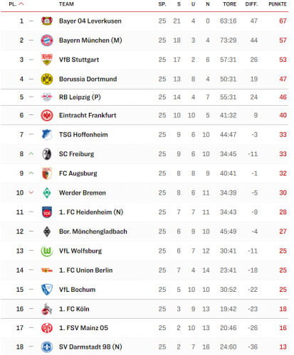 • После победы со счетом 1:0 в Хайденхайме у «Аугсбурга» теперь 32 очка. В эпоху правила трех очков ни одна команда никогда не вылетала из Бундеслиги с таким количеством очков после 25 игровых дней.