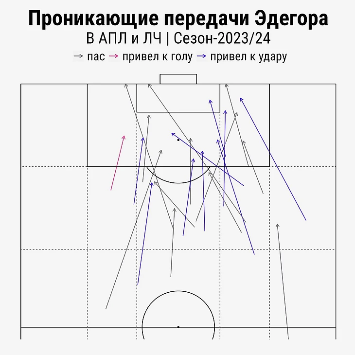 Проникающий пас – один из самых красивых и редких созидающих элементов в футболе. Например, в среднем за матч АПЛ этого сезона проходит только 1,63 таких паса.