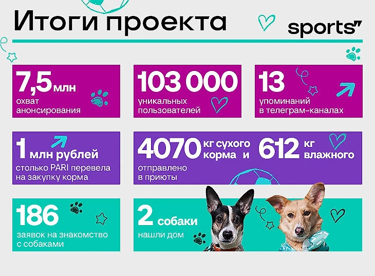 А мы собрали несколько комментариев клиента. Алексей Бабичев, директор по коммуникациям и устойчивому развитию PARI: «Благотворительные проекты, способные заинтересовать и вовлечь наших клиентов – одно из ключевых направлений развития PARI на ближайшее время. В этом году мы продолжим реализовывать социальные истории, поэтому у игроков PARI будет еще много возможностей принять участие в добрых и важных активностях». Алексей Левинский, директор по маркетингу PARI: «Андердоги» – безусловно, один из любимых проектов всей нашей команды. И мы очень рады, что клиенты PARI не только умилились вместе с нами, но и захотели помочь своими депозитами и даже приютить четвероногих друзей, чтобы продолжать вместе заниматься любимым хобби и заключать пари». Мари Бабаян, старший менеджер проектов PARI: «Андердоги» – это про тех, у кого даже при неравных возможностях всегда должен быть шанс переломить игру в свою пользу. Мы надеемся, что герои нашего проекта и подопечные приютов по всей стране получат такой шанс».