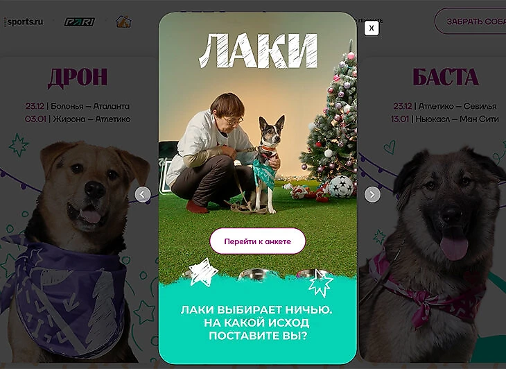 Весь видеоконтент мы разместили на лендинге, посвященном проекту. Помимо прогнозов, опубликовали там и анкеты собак. Пользователи могли посмотреть их, а потом заполнить заявку потенциального хозяина, чтобы познакомиться с приглянувшимся песиком.