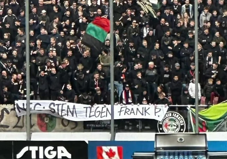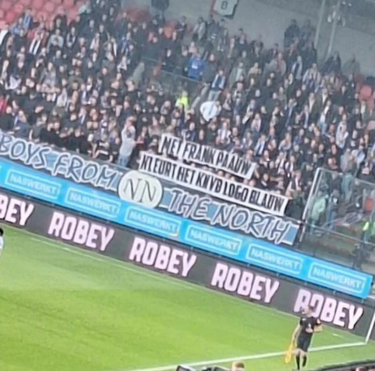 А ультрас из Неймегена на той же игре говоря о том, что «НЕК» тоже голосует против Франка П.
