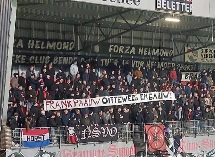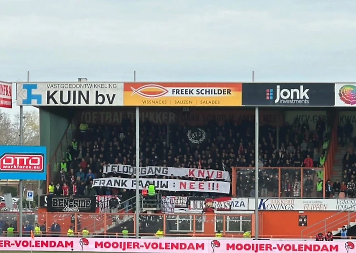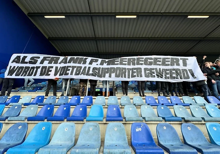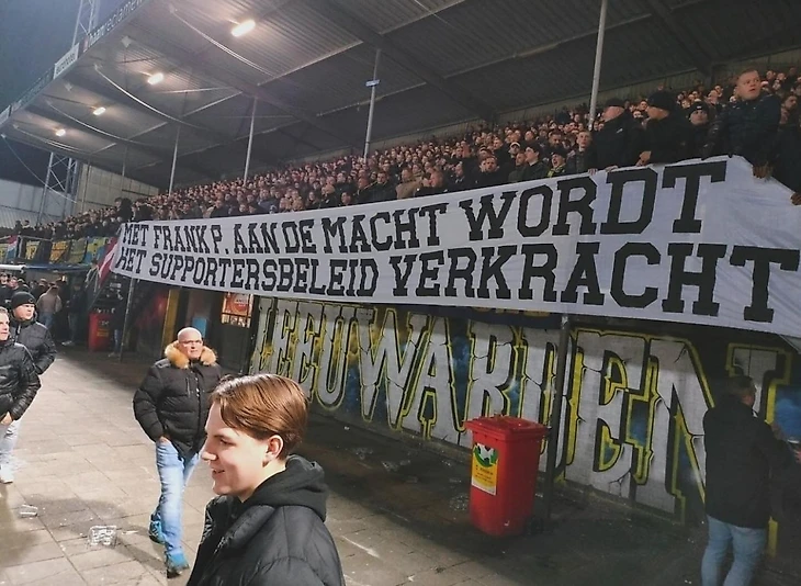 Фанаты «Волендама» на гостевой игре против «Зволле» с баннером: «Если Франк П. войдет в руководство, футбольные фанаты будут запрещены!».
