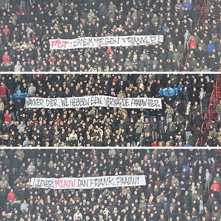 Напоследок сделаю подборку части баннеров (на все текстовики просто не хватит места) от ультрас различных клубов Нидерландов из разных дивизионов по поводу предстоящего прихода к власти Франка Пау.