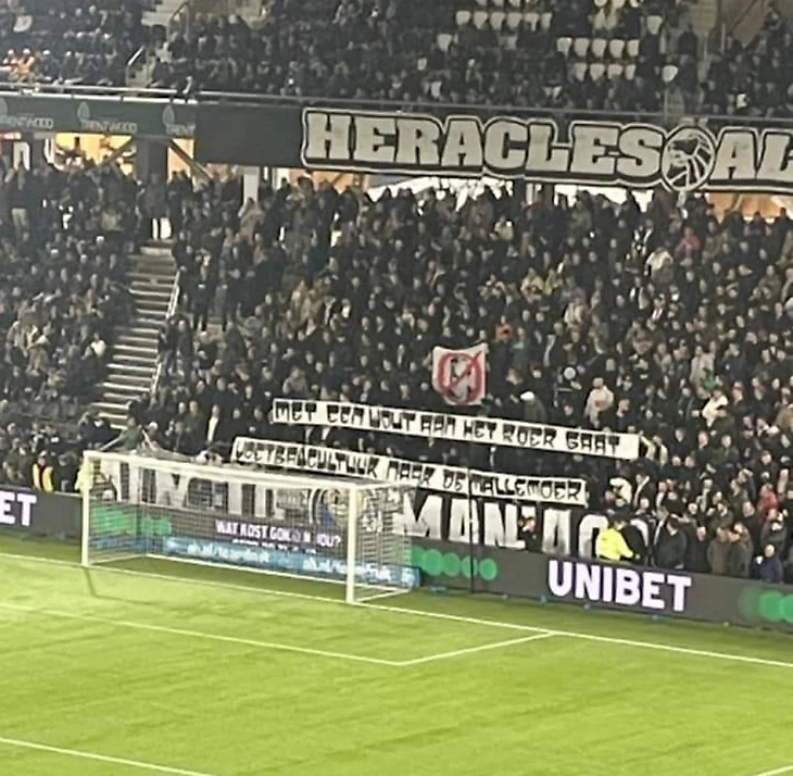 Аналогичные баннер от ультрас «НЕК» (Неймеген) и «Херенвена» на очной игре.